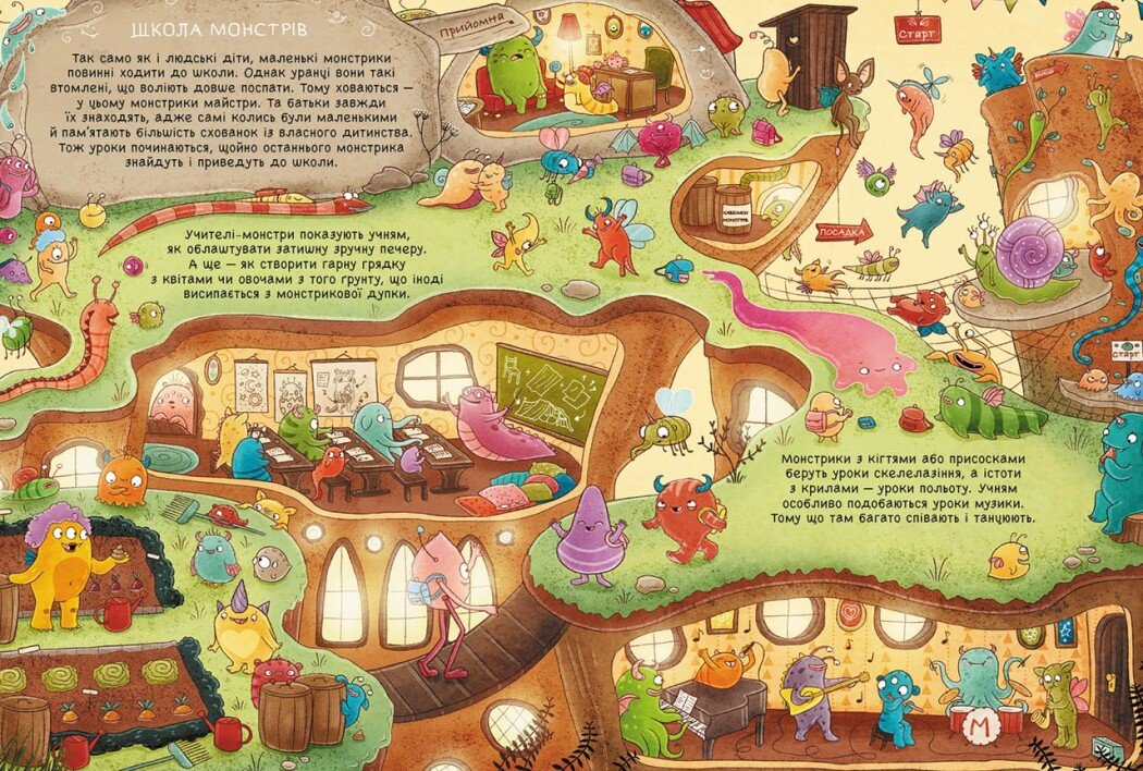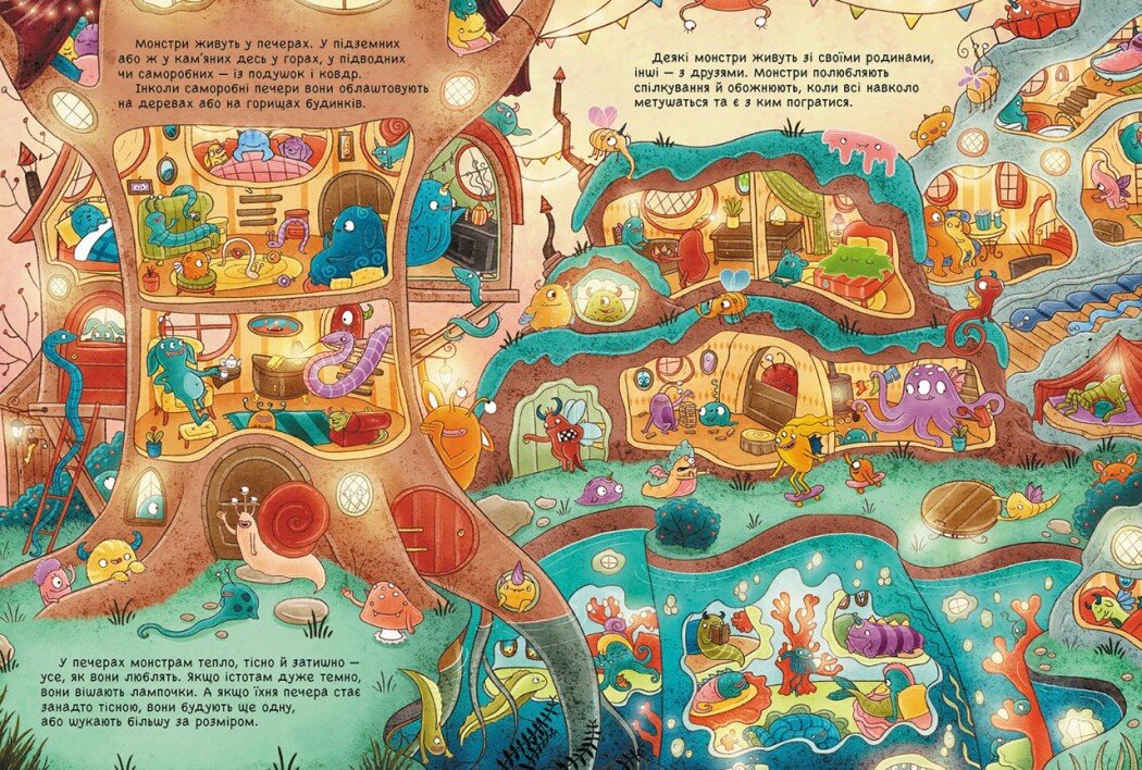 Усе-усе про монстрів в одній яскравій книжці. Тепер немає сенсу боятися цих страховиськ, адже вони, виявляється, такі милі й багато в чому нагадують дітей. Полюбляють смачненьке, грають у хованки-наздоганялки, ходять до школи, хоча й не хочуть рано прокидатися. А ще облаштовують собі домівки-печери під землею, під водою, в горах… або ж просто вдома із ковдр. Напрочуд цікаво роздивлятися монстрів і монстриків на веселих ілюстраціях.
