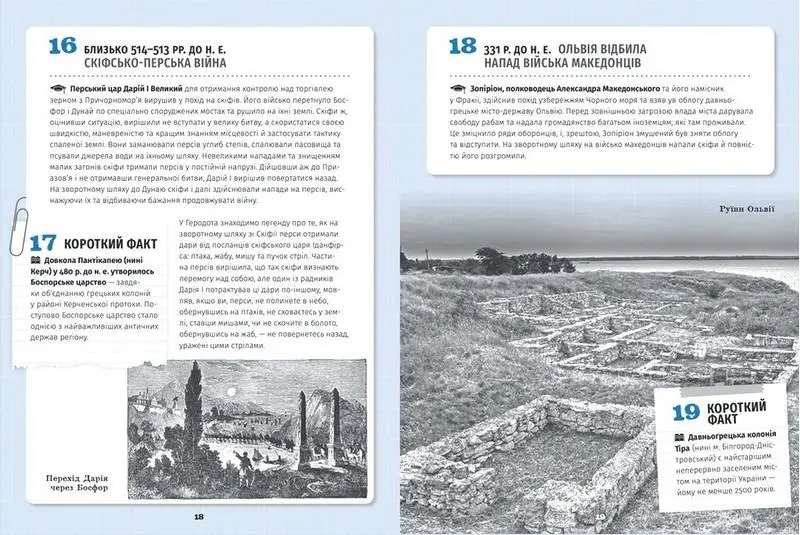 Історія України від мамонтів до сьогодення у 501 факті? Чому б і ні! Цікаві, важливі, часом кумедні, іноді трагічні, а найчастіше — доленосні: не всім цим фактам знайшлося місце у шкільних підручниках, але саме завдяки їм історія стає живою і динамічною. Яке українське місто згадує Гомер у своїй «Одіссеї»? Особистим знаком якого князя було зображення сучасного тризуба? Коли вперше в писемних пам’ятках згадано слово «Україна»? А хто з гетьманів був шанувальником кави? Відповіді на ці та інші питання знайдете на сторінках ілюстрованого довідника. Завдяки книжці «501 факт, який треба знати… з історії України» минуле стає ближчим, а сучасне — зрозумілішим.