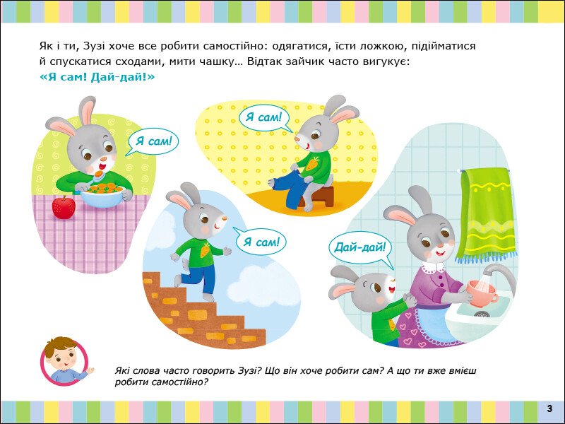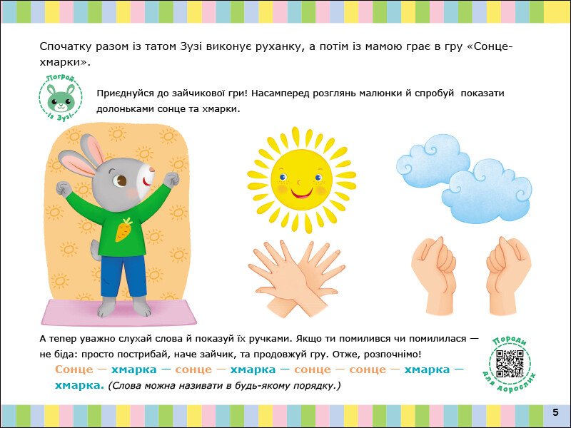 Це унікальний альбом з розвитку мови для наймолодших. Кожен розворот занурить дитину в атмосферу гри і спонукатиме до активної мовленнєвої діяльності. Вправи ретельно дібрані досвідченим логопедом-практиком. Завдання розвивають слухову пам’ять малюка та його моторні навички, тренують м’язи мовного апарату й поліпшують фонемне сприйняття, допомагають розговорити малюка й збагачують його словник. Альбом стане в нагоді як батькам, так і фахівцям у центрах раннього розвитку, вихователям і логопедам.