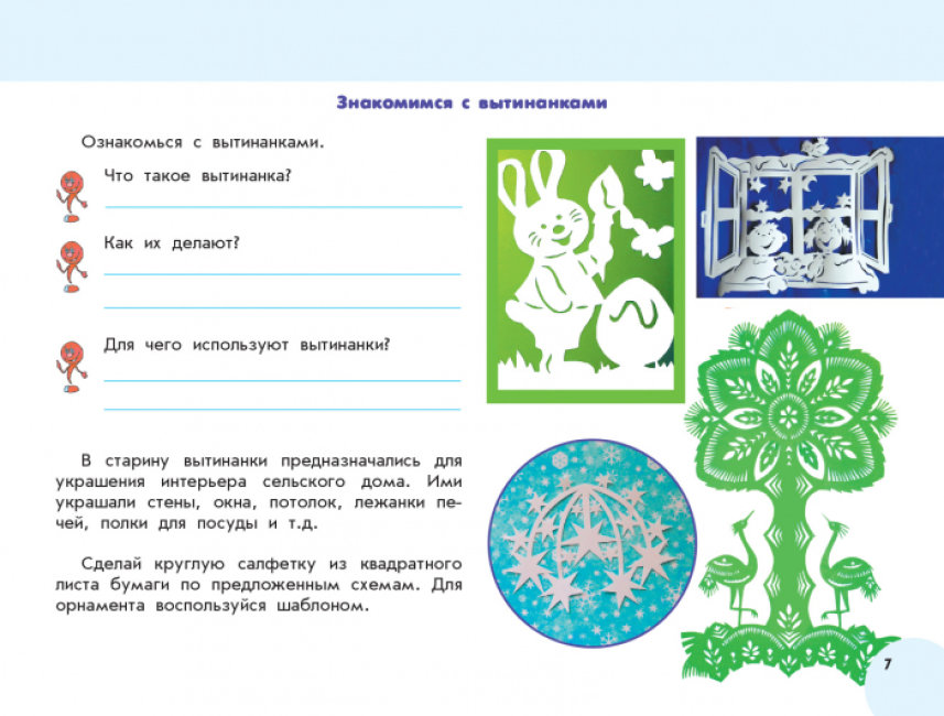 Н. В. Котелянец, Е. В. Агеевой. Пособие содержит творческие задания по трудовому обучению, образцы готовых изделий, схемы выполнения изделий, которые должны изготовить