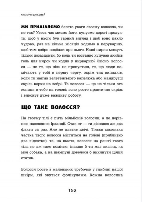 Найскладніший пристрій у всесвіті — твоє тіло. Щоб уміло ним керувати, треба опанувати інструкцію користувача. І якщо вона не нудна, а захоплива — це реально круто! Про автора Адам Кей — письменник, який здобув чотири літературні премії, і колишній лікар, що не отримав нагород. Уже понад 3 000 0000 примірників його книжок продано в усьому світі. Відгук фахівця Хочу подякувати колезі — авторові цього чудового посібника. Я сама наче перетворилася на дитину й захоплено читала про всі ці дивовижні “соки”, “мішки”, “чудовиська” та “штуку, яка звисає в глибині рота”. Ця подорож людським тілом — неймовірна пригода, створена вдумливим фахівцем і водночас надзвичайним оповідачем. Уміння передати доволі складні речі, як-от будову та функції органів людського тіла, так, щоб це було цікаво і юному читачеві, і, впевнена, його батькам — велике мистецтво. Кандидатка медичних наук Марина Борисюк