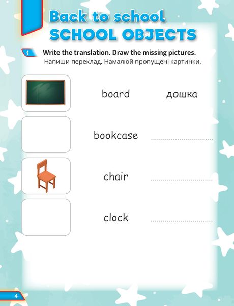 Super Dictionary Book 2 – це посібник, розроблений спеціально до курсу Quick Minds для учнів другого класу, в якому поєднані словник з кольоровими ілюстраціями та вправи для запам’ятовування нової лексики. Яскраві малюнки допоможуть швидко і легко запам’ятати слова, а вправи – розвинути навички читання і письма. Посібник має чітку структуру: слова до кожного юніту подані на трьох розворотах: розворот 1: ілюстрація – слово – переклад; розворот 2: ілюстрація – слово – напиши переклад і намалюй відсутні картинки; розворот 3: ілюстрація – напиши слово і намалюй відсутні картинки – переклад.
