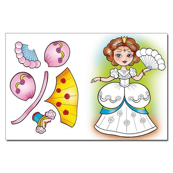 Подивіться на схеми. Вирiжте по контуру деталі вбрання красуні й приклейте їх до основного малюнка, та у вас з’являться модні паперові подружки.