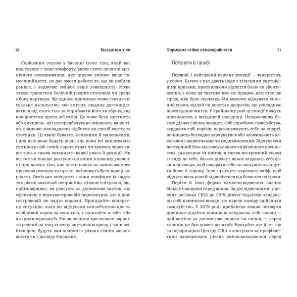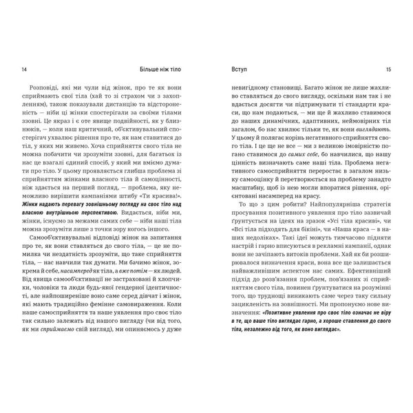 Позитивне уявлення про своє тіло — це не віра в те, що ваше тіло гарне, а хороше ставлення до нього незалежно від його вигляду. Наш одержимий красою світ всіляко просуває ідею, що щастя, здоров’я й те, як ставитимуться до вас люди, залежить від нашої зовнішності. Але сестри-близнючки, докторки Лексі та Ліндсі Кайт, пропонують альтернативне бачення. У своїй книзі «Більше ніж тіло. Ваше тіло — знаряддя, а не прикраса» авторки діляться потужними практичними порадами, які виходять за рамки «бодипозитиву», детально аналізуючи різноманітні фактори впливу: від медіаспоживання до здоров’я і фітнесу, саморефлексії та співчуття до себе. Сестри Кайт демонструють, наскільки згубним може бути вплив самооб’єктивації на наше повсякденне життя. Це ідеальна книжка для тих, хто хоче змінити своє самосприйняття, але не знає, з чого почати. Чому варто придбати: · Книжка допоможе налагодити стосунки зі своїм тілом і сформувати його позитивний образ, а також переосмислити ставлення не лише до власного тіла, а й до зовнішнього вигляду інших людей. · Історія, що нею діляться авторки, яскраво демонструє негативні наслідки об’єктивації тіла в суспільстві та її вплив і на дорослих, і на дітей та підлітків. · «Більше ніж тіло» цілком може стати посібником для батьків, які хочуть допомогти своїм дітям не зважати на стереотипи та полюбити своє тіло й себе.
