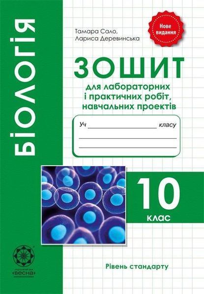 Біологія. 10 кл. Зошит для лаб. і практ. робіт + проекти 2021 – Сало Т. О. – ВЕСНА