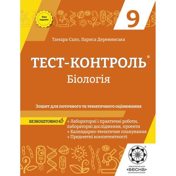 Зошит для поточного та тематичного оцінювання містить завдання у тестовій формі контролю знань учнів на уроках біології у 9 класі. Позитивною в зошиті є наявність самостійних робіт і тематичного оцінювання, передбачених чинною програмою, затвердженою МОН України. Навчальне видання допоможе вчителеві здійснювати ефективний контроль над засвоєнням учнями навчального матеріалу, перевіряти сформованість того чи іншого компонента компетентнісного підходу. Зошит допоможе учневі зорієнтуватися у завданнях тестової форми та набути навичок швидкого та безпомилкового їх виконання. Окрім того, школярі можуть використовувати зошит під час самостійної підготовки до роботи із тестовими завданнями, самоперевірки знань, умінь і навичок. До зошита додається «Календарно-тематичне планування» з предмета, яке розміщено на сайті видавництва в розділі «Методична підтримка»: https://vesna-books.com.ua/download/. Представлені в зошиті лабораторні роботи, лабораторні дослідження, дослідницький практикум та проєкти сприятимуть кращому закріпленню теоретичних відомостей з курсу біології у 9 класі. Пропоновані тести розраховані на учнів загальноосвітніх навчальних закладів і вчителів біології.