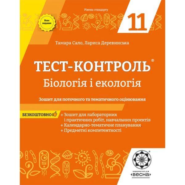 Бiологiя і екологія 11 клас. Тест-контроль. Зошит для поточного та тематичного оцінювання. Сало Т.О. 978-617-686-592-6