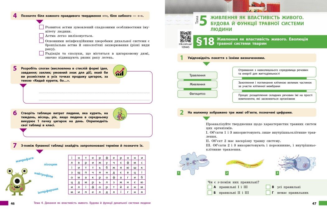 § 7. Обмін речовин та перетворення енергії як властивості живого. Особливості обміну речовин у тварин і людини
