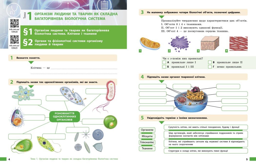 § 1. Організм людини та тварин як багаторівнева біологічна система. Клітини і тканини