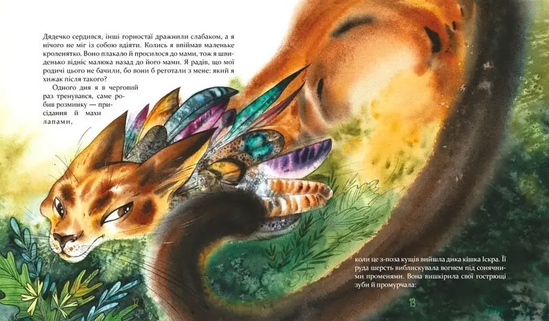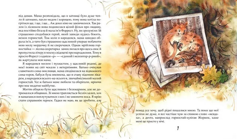 Сила: Той, хто має сміливість бути собою, здобуде силу. Девіз: Діти мають право на свого Фореста Горностаї — найспритніші хижаки в лісі. Юний Форест найшвидший серед них, тож не дивно, що всі чекають від нього великих звершень. Він має справжній талант і просто мусить стати легендарним мисливцем… Чи не мусить? Форест не такий, як решта горностаїв. Він не полює на дрібних тварин, а рятує їх. І може заприятелювати навіть із мишею. Піксі — лісова миша. Усі її родичі не надто товариські й полохливі. Але Піксі особлива. Вона не лише розумна, а й неймовірно смілива, тому першою простягає руку дружби небезпечному хижакові — горностаю. Ківі — безкрилі пташки, що живуть тільки в Новій Зеландії. Хтозна, як вони потрапили до європейського лісу, та ясно одне: в компанії пташеняти Буркотуна Форесту й Піксі нема коли нудьгувати. Тож як воно — бути не таким, як усі? Однолітки не беруть у компанію, а ті, з ким прагнеш подружитися, насміхаються. Кажуть, що ніч найтемніша перед світанком. А що, як і твій світанок уже близько? Можливо, через нелегкі випробування доля намагається подарувати тобі щось справді важливе й саме так веде до здійснення мрій? Анотація: Пригодницька повість української письменниці Яни Хоменко переносить читача у казковий ліс, де життя звірів таке схоже на життя звичайних людей. Вони будують стосунки з рідними й однолітками, сваряться і миряться, розважаються і втрапляють у халепи. Найшвидший у лісі горностай, розумна мишка та буркотливе пташеня — що між ними спільного? Чи зможуть вони зберегти свою неочікувану дружбу, врятувати рідний ліс і вибороти право бути собою?