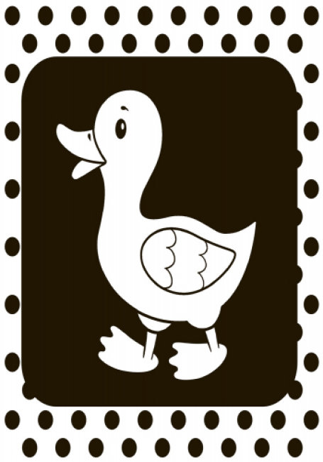 Книжка-розкладайка для немовлят із чорно-білими картинками. Вона спеціально створена для розвитку і координації зору і сприйняття у малюків за популярною методикою Сесіль Лупан і Сари Брюер. Книга середнього розміру зі щільного картону. Вона ідеально підійде для розглядання картинок малюком у ліжечку. З одного боку розкладачки розташовуються чорно-білі картинки, з іншого боку – додається ще один колір. Художник П. С. Кривцова.