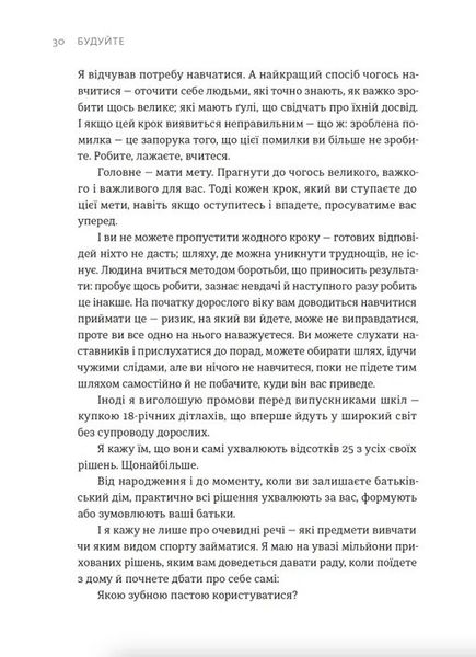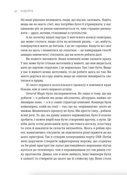 Будуйте» — енциклопедія корисних знань для людей із креативним мисленням, які прагнуть створювати інноваційні та значущі продукти. Тоні Фаделл, знаний американський топ-менеджер і наставник, був частиною команд зі створення відомих брендів, як-от iPod, iPhone, Nest Learning Thermostat і Nest Protect. Захопливо й відверто він розповідає про шлях, яким ішов, аналізуючи вдалі рішення, а також помилки, які скоїв.