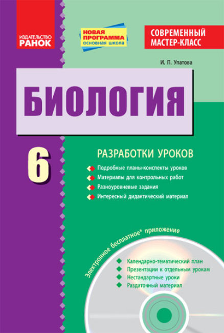 Пособие (автор Упатова И.П) составлено в соответствии с новой учебной программой курса « Биология» для 6 класса. Издание содержит подробные планы-конспекты уроков. К пособию прилагается электронный диск, который содержит календарный план, шаблоны уроков и презентации к ним, раздаточные материалы для учащихся. Предназначено для учителей биологии.