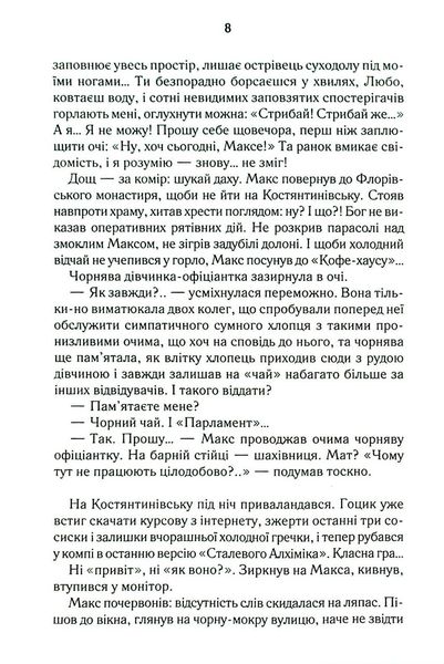 Пів року незалежності – на більше Макса не вистачило. Заради чого він б’ється головою у глуху стіну, порвав із батьками, злидарює? Його дівчина втекла, не підтримавши відчайдушних спроб стати неймовірним чоловіком… Прийняти фінансову допомогу рідних і гидувати нею – оце по-Максовому! Тож одного не зовсім звичайного дощового вечора Макс вирішив зникнути. Назавжди. Колись він не ризикнув кинутися у Дніпро, щоб урятувати своє кохання, зате нині готовий шубовснути у воду – аби випірнути згодом десь далеко зовсім новим, очищеним…