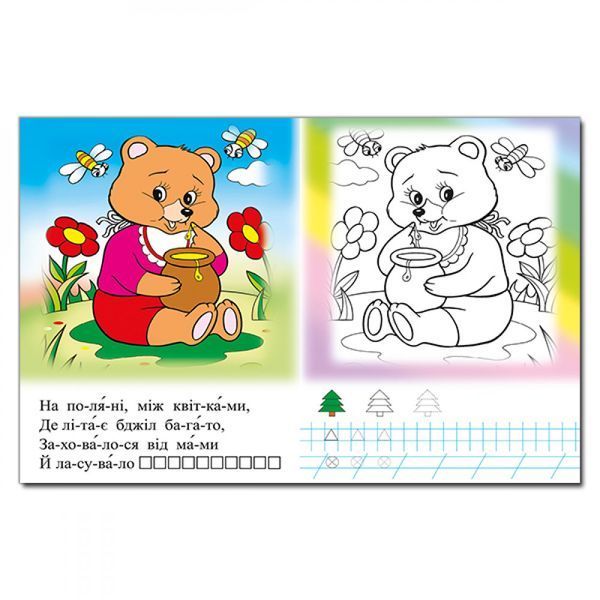 Серія книжок «Чарівна розмальовка» створить основу для сприйняття кольорів, допоможе дитині навчитися читати по складах та концентрувати увагу, здобути навички порівняння, малювання та письма. Ці здобутки необхідні для підготовки Вашого малюка до початкової школи. Бажаємо успіхів!