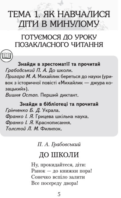 Літературний матеріал згруповано за тематичними блоками, його зміст відповідає вимогам чинної навчальної програми.
