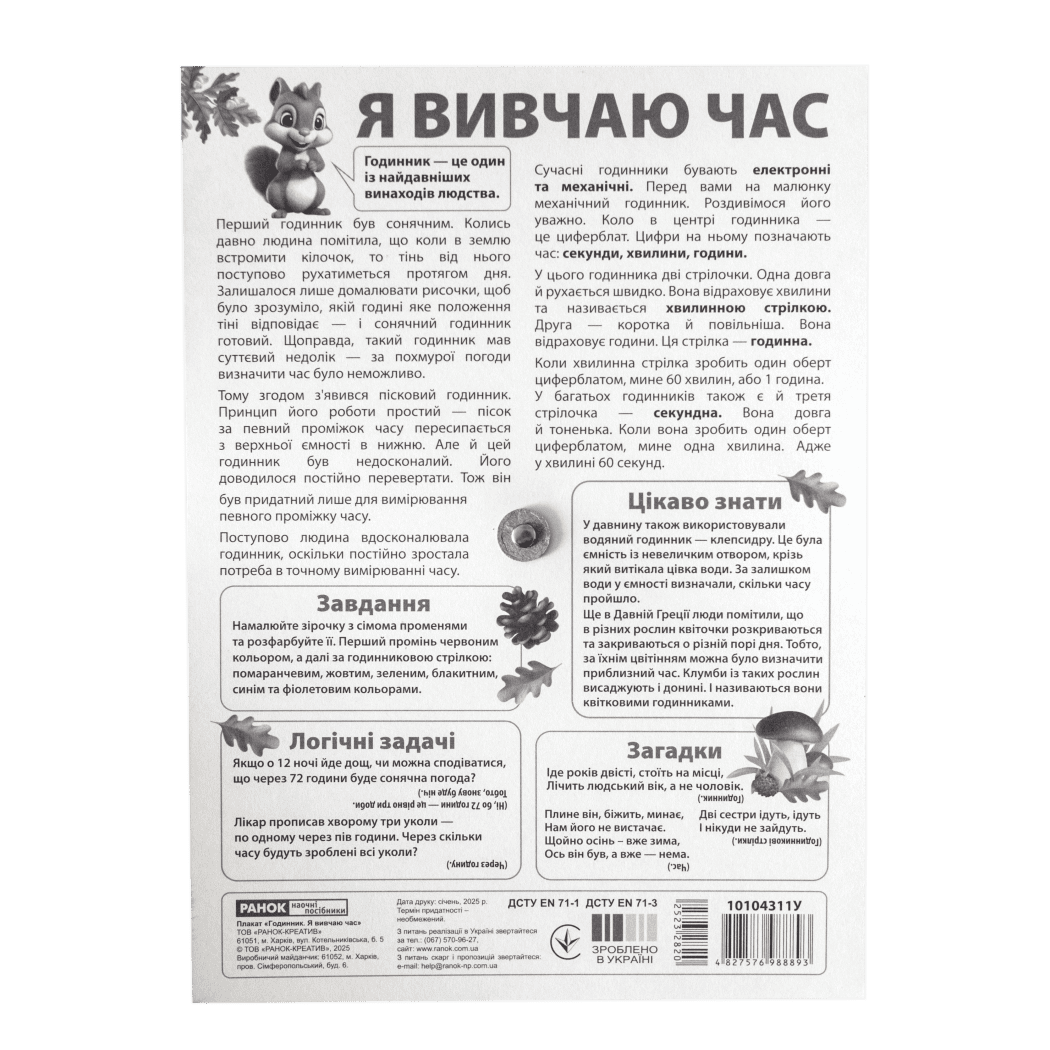Чи складно вашій дитині зрозуміти поняття часу? Представляємо демонстраційний матеріал «Я вивчаю час», розроблений для того, щоб допомогти дітям легко та весело опанувати годинник. Цей набір – практичний комплексний інструмент для навчання!