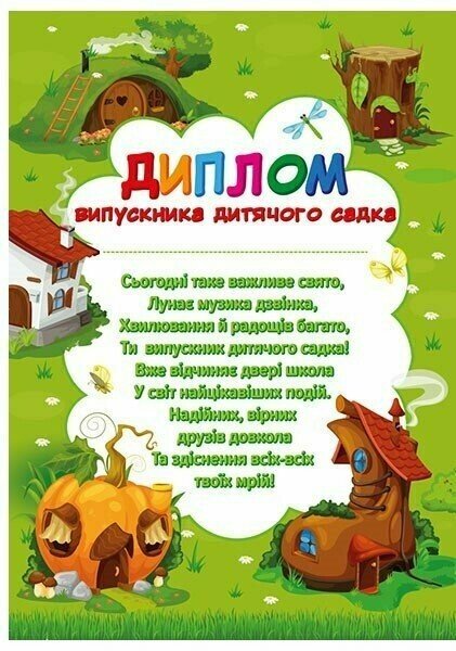 Диплом випускника дитячого садка «Чудернацькі будиночки»