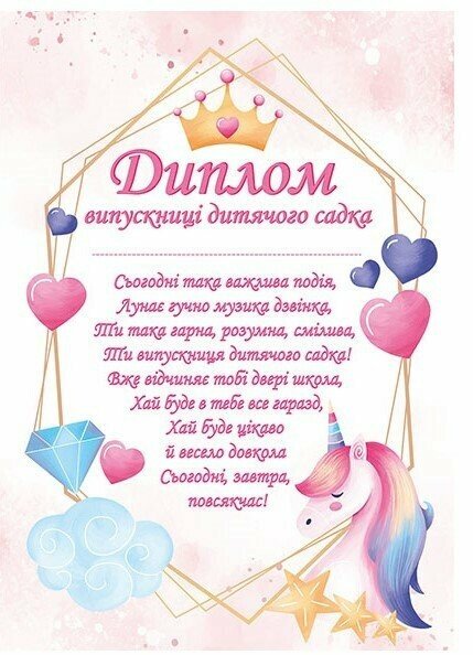 Диплом випускниці дитячого садка з єдинорогом – чарівна пам’ятка про важливий етап у житті кожної дівчинки!