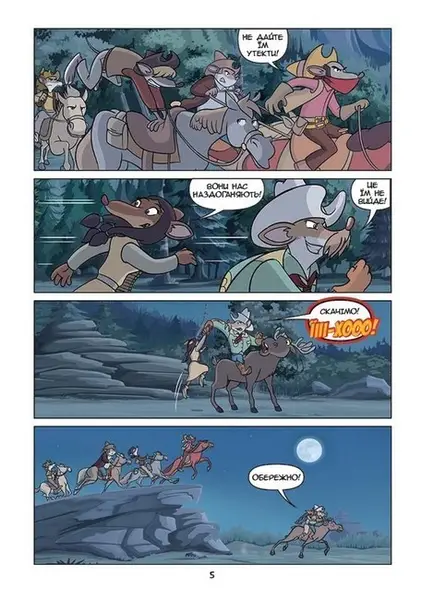 Друг Джеронімо Стілтона, відомий режисер Ед Грейфер, запрошує його відвідати знімальний майданчик фільму «Кусень Сиру-4». Джеронімо не сумнівається, що з цього вийде гарний репортаж для мультимедійного випуску його газети «Гризун», і разом зі сестрою Теєю, небожем Бенджаміном та його подружкою Пандорою вирушає дивитися зйомки фільму про Дикий Захід. Проте з’ясовується, що то одна, то інша халепа ставлять вихід фільму під загрозу. Джеронімо зі своєю вірною командою відчуває, що щось тут негаразд, і починає власне розслідування. Та невдовзі справа шалено закручується — а вигук «Стоп! Знято!» тут нічим не допоможе. Чи зможуть Джеронімо та його команда докопатися до істини і врятувати фільм, на вихід якого вони й самі чекають? Про це ви дізнаєтеся, прочитавши цю книгу.