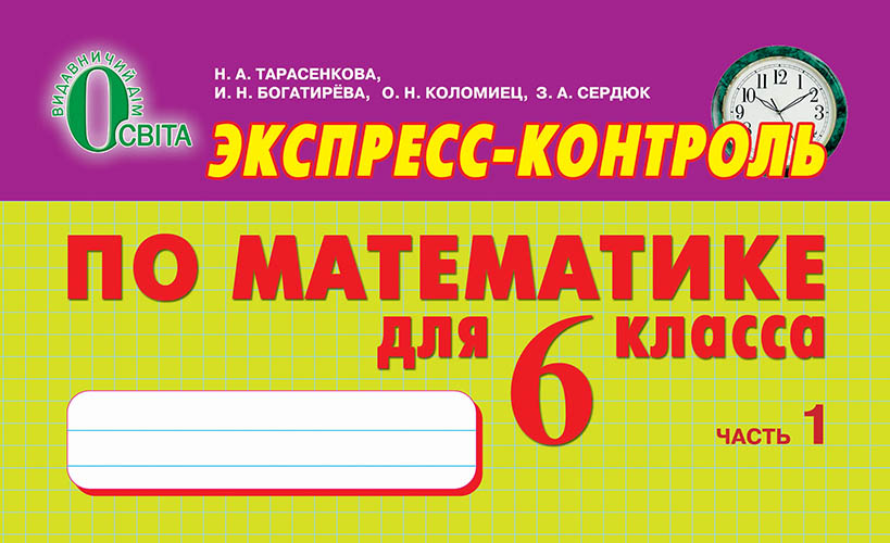 Експрес-контроль з математики для 6 класу : навчальний посібник загальноосвітніх навчальних закладів у двох частинах / Н.А. Тарасенкова, І.М. Богатирьова, О.М. Коломієць, З.О. Сердюк. — К. : Видавничий дім «Освіта», 2014.