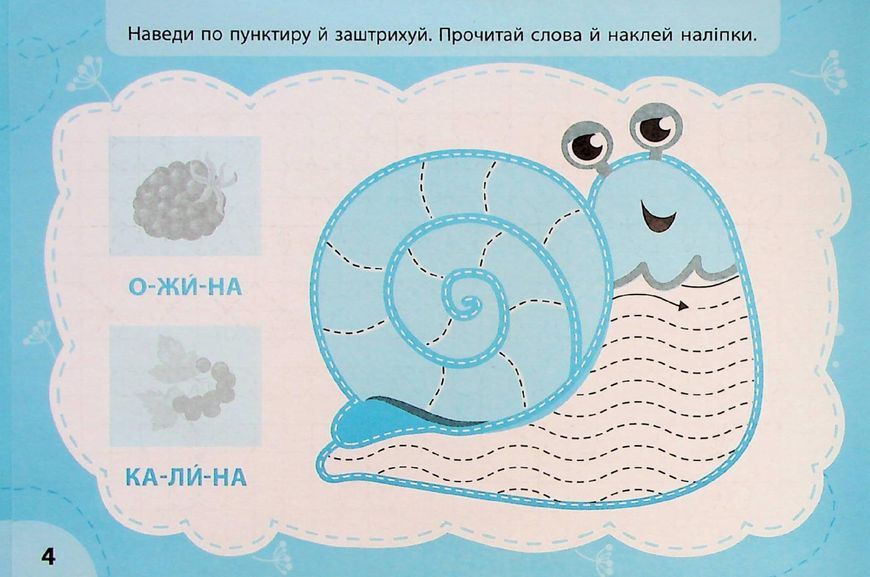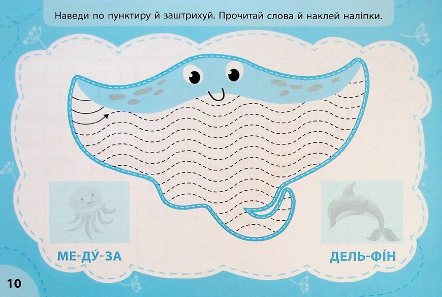 Із книжкою «Пишу та штрихую» дитина наводитиме малюнки по пунктиру й штрихуватиме їх, малюватиме різні лінії, фігури й візерунки по клітинках, а також читатиме слова по складах і клеїтиме відповідні зображення. Робота з виданням допоможе покращити дрібну моторику пальців рук, розвине увагу й потренує пам’ять, поліпшить навичку читання та виховає акуратність та посидючість під час виконання завдань.
