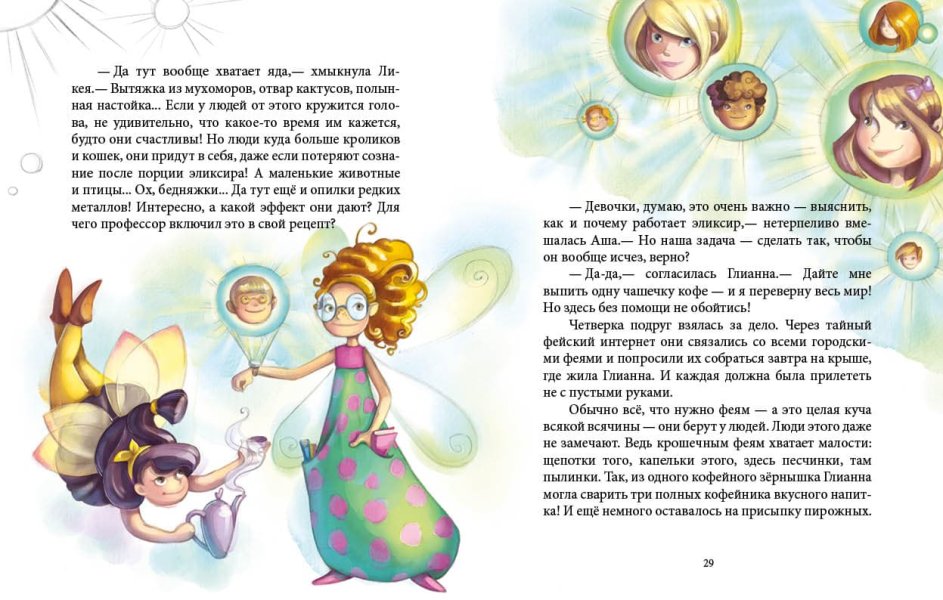 Гадаєте, що феї — це тендітні створіння, які цілими днями лише пурхають з квітки на квітку в милих мереживних сукенках? А ось і ні! Вони, як і люди, бувають різні. Аша, Торрі, Лікея і Гліанна — чотири сучасні феї, які мешкають у великому Місті. І хоча вони крихітні, мов метелики, але відваги ім не бракне! Та чи вдасться подругам урешті-решт перемогти злого професора та врятувати Місто від його небезпечного еліксиру? Щоб дізнатися, мерщій розгортай книгу!