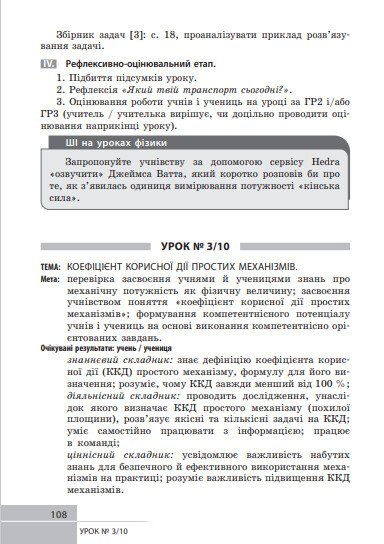 формуванню в учнівства предметних і ключових компетентностей, розвитку критичного мислення, дослідницьких навичок та інтересу до вивчення фізики.