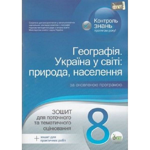 Географія. 8 клас. Економічна і соціальна географія України. Зошит для поточного та тематичного оцінювання. + зошит для практичних робіт. Павленко І.Г. Нова програма! 978-617-7207-50-3