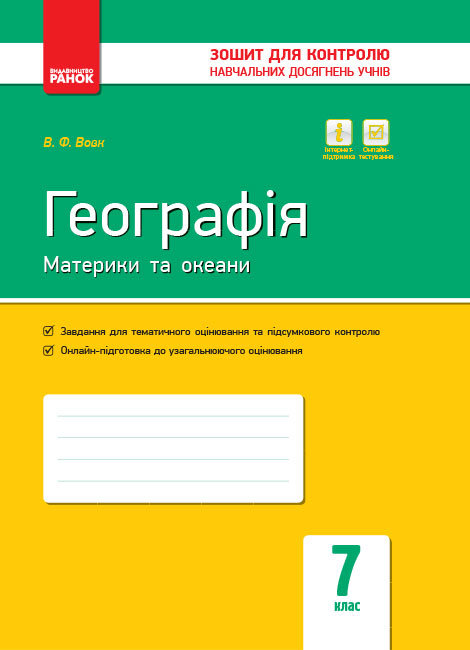Географія. Материки та океани. 7 клас. Зошит контролю навчальних досягнень учнів