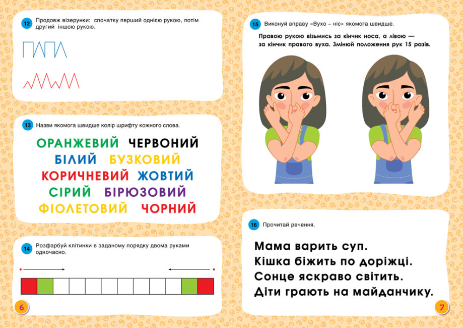 “Цей тренажер призначений для роботи педагогів, логопедів, психологів і батьків із дітьми дошкільного і молодшого шкільного віку з дислексією, дисграфією, дискалькулією, порушеннями слухового орієнтування або затримкою когнітивного розвитку. – близько 50 нейропсихологічних вправ на розвиток правої півкулі головного мозку, тобто на формування і розвиток уяви, фантазії і творчих здібностей; Кожний вид вправ повторюється кілька разів. Завдання розміщуються у порядку зростання ступеня складності, що сприяє поступовому розвитку дитини. ”