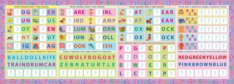 Книга містить цікаві завдання, виконати які допоможуть яскраві наліпки. Працюючи із цими книжками, дитина легко засвоїть англійські назви тварин, фруктів та овочів. Багаторазові наліпки дозволяють повертатися до вивченого матеріалу та повторювати його./