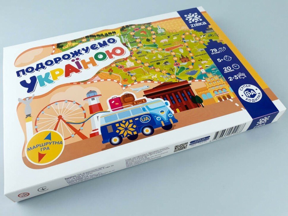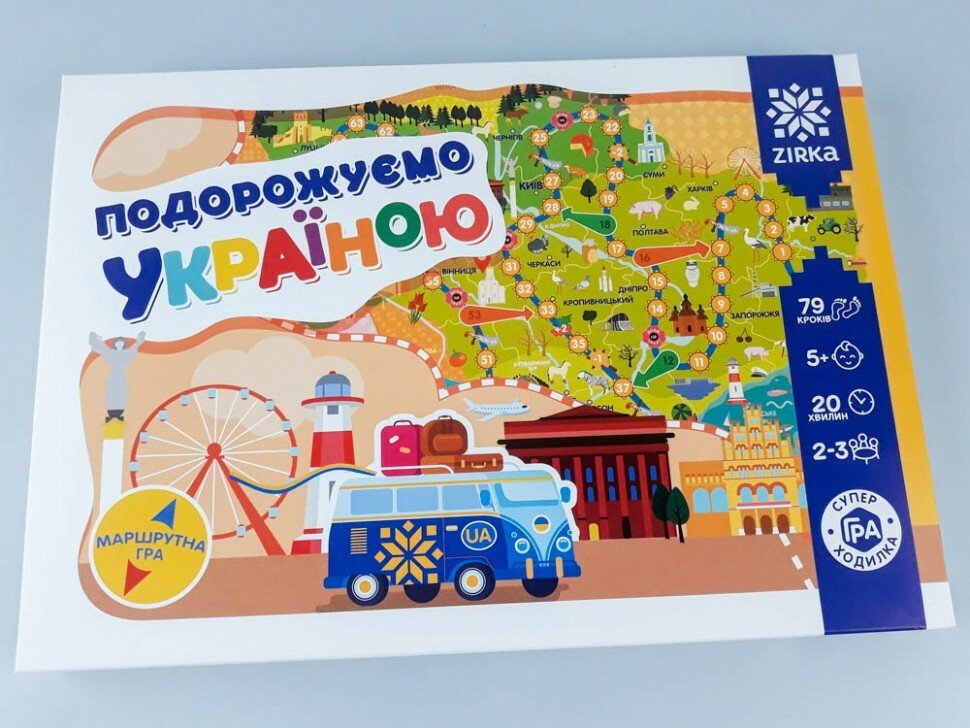 Ігровий процес простий і зрозумілий навіть найменшим гравцям: потрібно кинути кубик і зробити відповідну кількість “кроків” по карті. Перемагає той гравець, який першим дійде до фінішу. Дитина в процесі гри навчиться рахувати, логічно мислити, розвине уяву і посидючість, а також зможе легко запам’ятати назви міст України та їх особливості. У наборі: ігрове поле 42х29 см, 3 фішки, гральний кубик