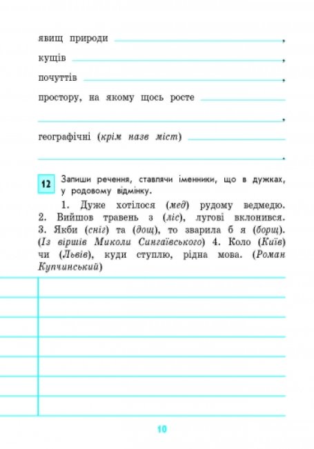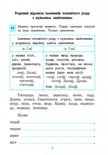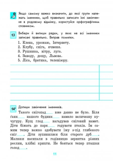 У посібнику автори пропонують ¬різнотипні вправи й завдання, спрямовані на формування мов¬леннєвої компетенції учнів 4-го класу: користу¬ватися орфографічним словником для перевірки закінчень іменників чоловічого роду на приголос¬ний у родовому відмінку, відображати на письмі явища чергування приголосних [г], [к], [х] із [з’], [ц’], [с’] та голосного [і] з [е], [о], дотримуватися правила окремого написання не з дієсловами, використовувати форми 3-ї особи множини й опор¬ні форми дієслів із наголошеним закінченням для перевірки ненаголошених особових закінчень діє¬слів теперішнього й майбутнього часу тощо.