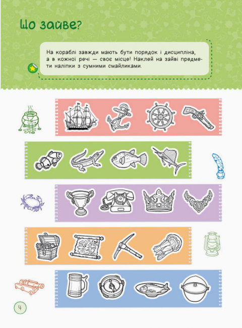 Лабіринти, розмальовки, наліпки — усе це під однією обкладинкою. Піктограми дозволяють дитині виконувати завдання без участі дорослих. Багатосторінкова книжка – багато цікавезних завдань, 76 наліпок.