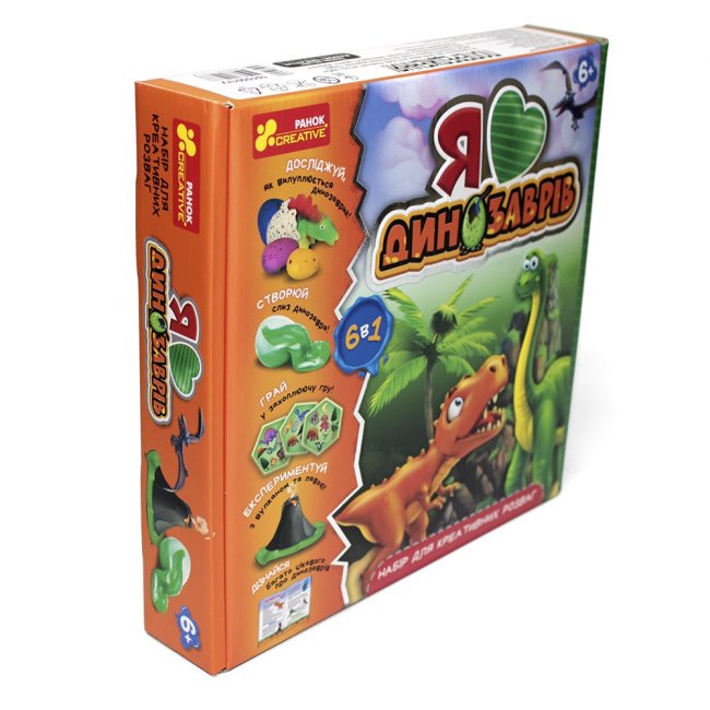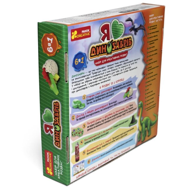 Набір для креативних розваг. 6 в 1 коробці! !Упакування з 3D тисненням!Динозаври – такі неймовірні тварини! Запрошуємо познайомитися з ними ближче, і трохи зануритися в їхній час. У наборі зібрані розваги, які зацікавлять кожну дитину! Це і досліди, і дослідження, і карткова настільна гра, і пізнавальна цікава інформація про динозаврів з яскравими малюнками!Набір містить все необхідне для креативних розваг.