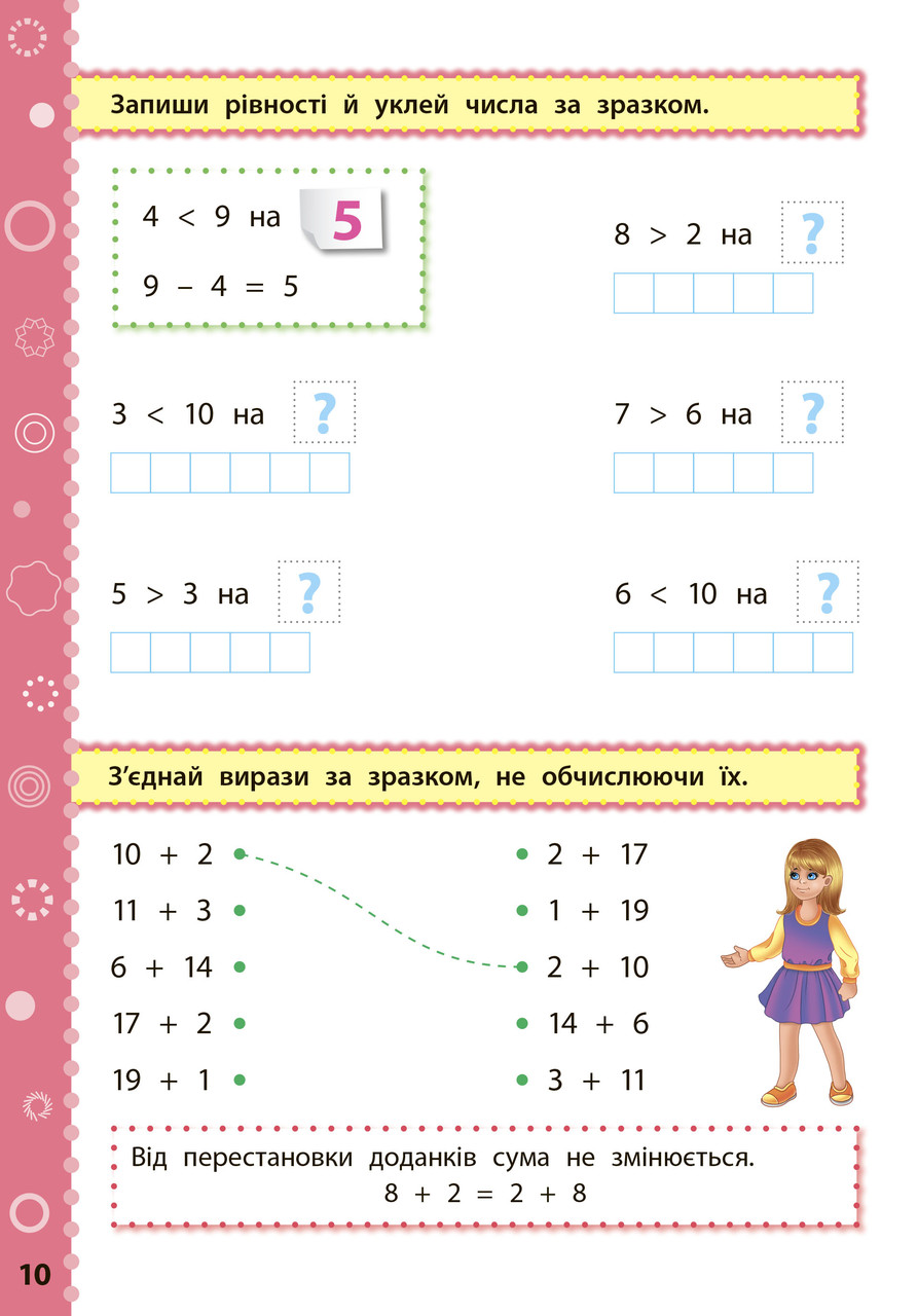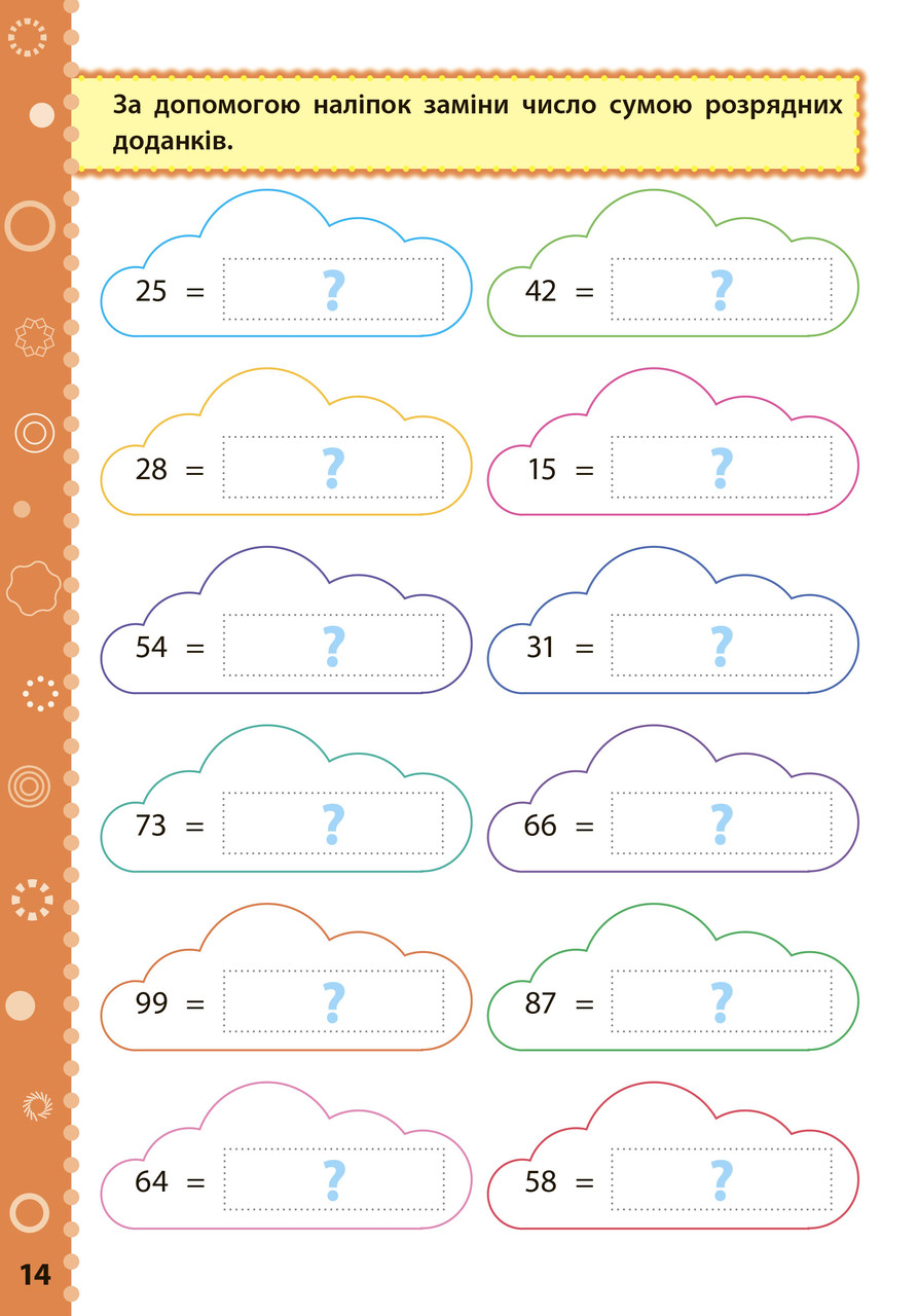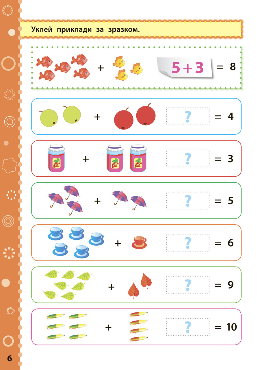 Видання охоплює матеріал 1 класу з предмета «Математика» і відповідає вимогам освітніх програм математичної галузі Нової української школи. Ігрова форма завдань, 100 наліпок і яскраві ілюстрації допоможуть легко сформувати ключові компетентності дитини та закріпити набуті в школі знання. Книжка стане в пригоді молодшим школярам, їхнім батькам і вчителям перших класів.