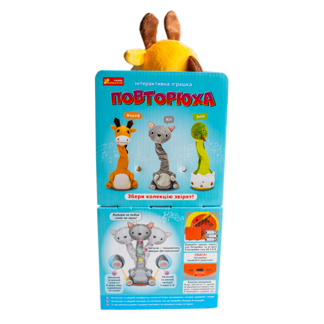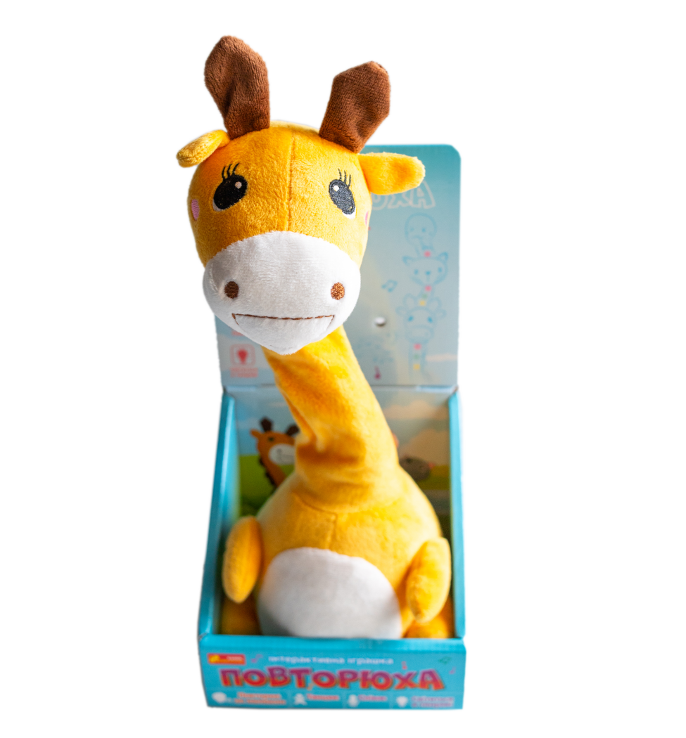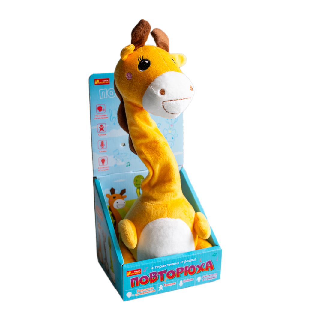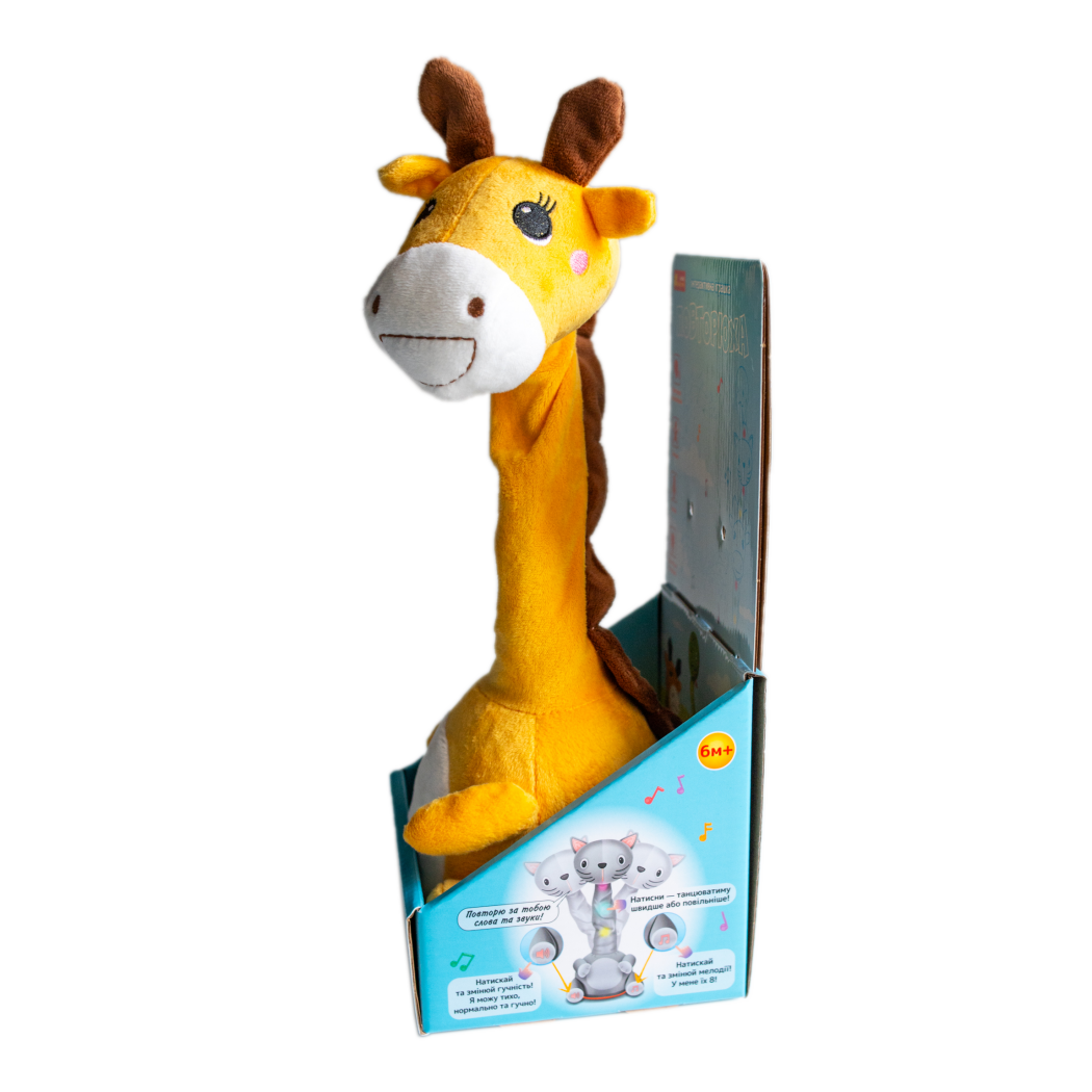 Познайомтесь із веселим «Жирафом» — інтерактивною іграшкою, яка миттєво стане найкращим другом малюка! Він уміє повторювати слова та звуки, танцює, співає й світиться, перетворюючи гру на справжнє свято емоцій. М’який плюшевий корпус у теплих відтінках помаранчевого кольору, кумедні ріжки, гривка та світлий животик — усе в ньому створене для обіймів. Іграшка приємна на дотик і безпечна навіть для найменших діток.