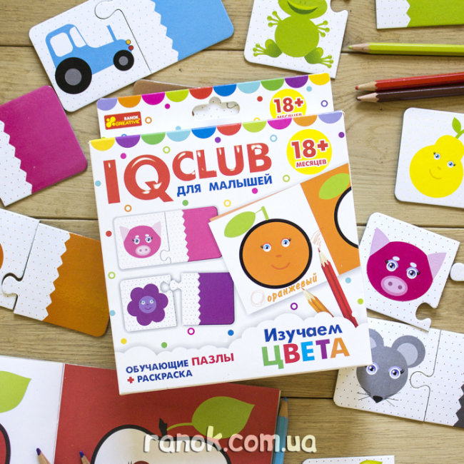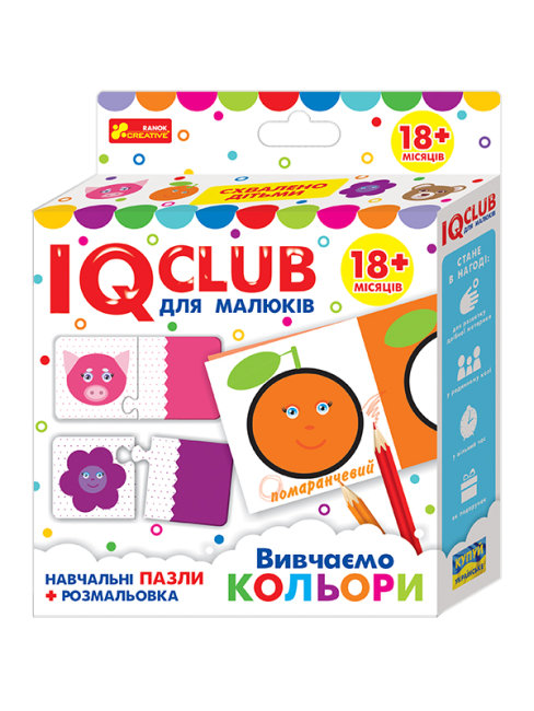 IQ-club для малюків. Навчальні пазли з розмальовкою. Вивчаємо кольори