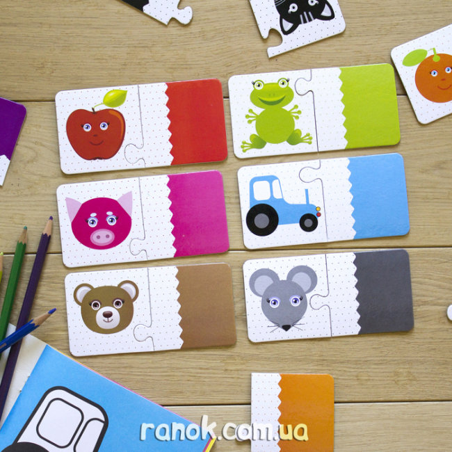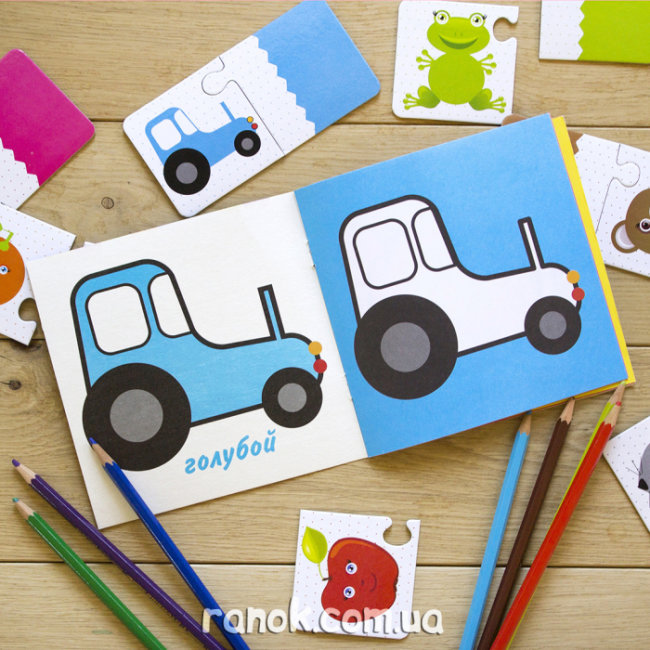 Набір розроблено для ознайомлення малюка з кольорами у формі гри. Розвиває дрібну моторику і точність, що в майбутньому полегшить засвоєння навичок письма. Тренує спостережливість, пам’ять та зорове сприйняття. Сприяє вивченню нових слів та кольорів. Прості кольорові ілюстрації будуть спонукати дитину до перших самостійних спроб розмальовування та ігор із пазлами.