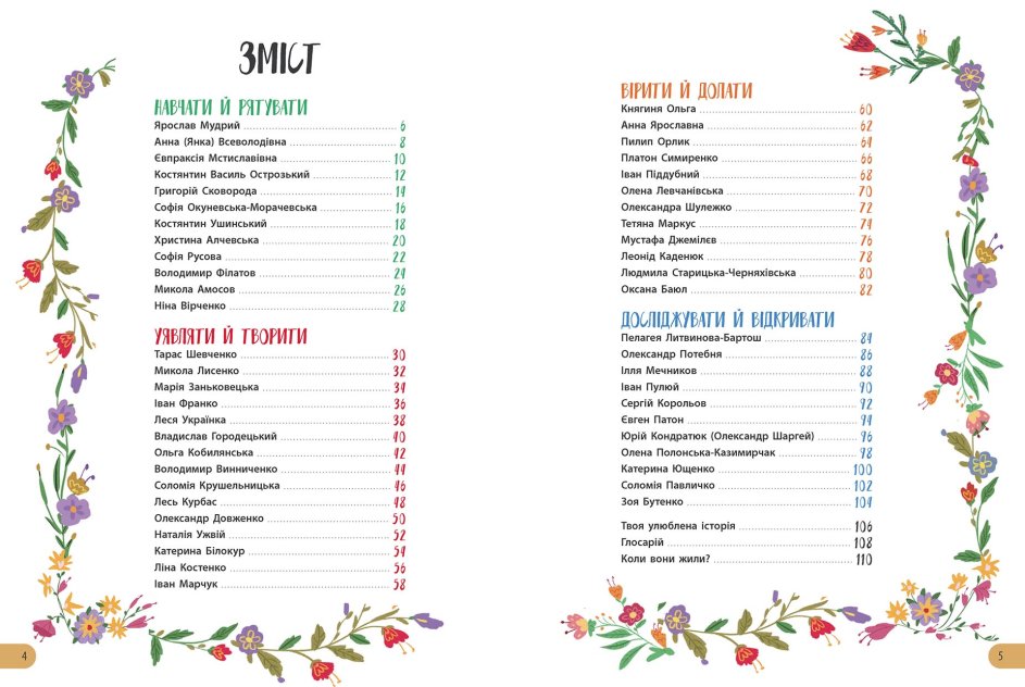 Ця книжка познайомить читачів із видатними українцями: чоловіками та жінками, які зробили вагомий внесок у розвиток нашої держави, науки та мистецтва. Історія кожного з них цікава й унікальна: чиясь надихає, чиясь змушує замислитися, чиясь відверто засмучує. Це книжка, з якої можна почати знайомство з українськими постатями, але на якій точно не слід зупинятися, адже поза нею лишилися сотні імен.