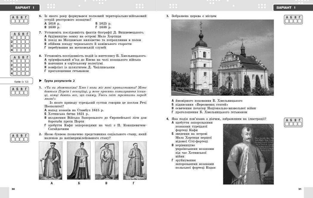 Історія України. 8 клас. Поточне та підсумкове оцінювання за групами результатів + діагностувальна робота