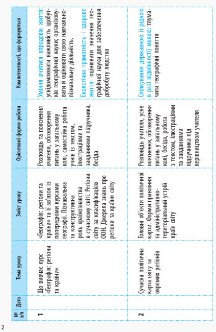 Календарно-тематичне планування. Географія 10 клас. Рівень стандарту