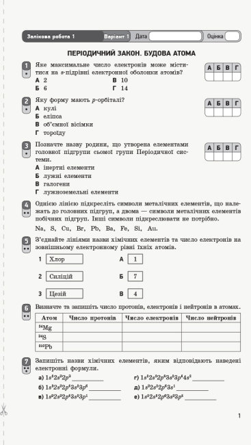 Хімія. 8 клас. Зошит для контролю навчальних досягнень учнів