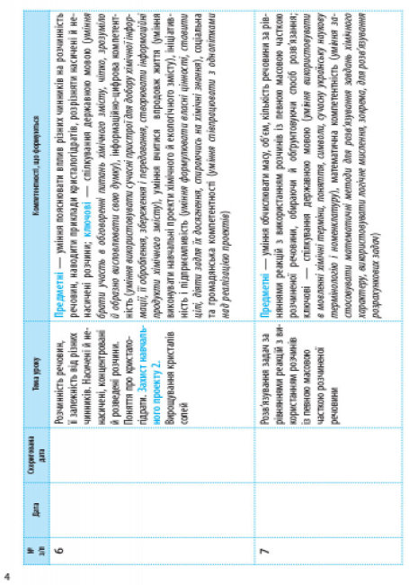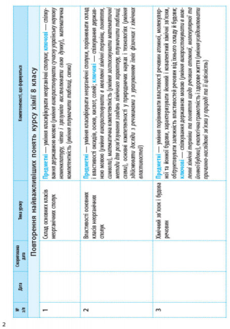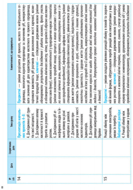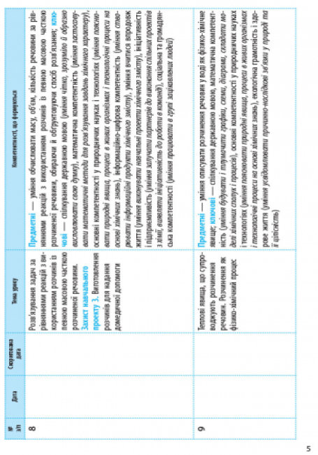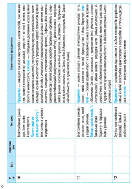 Хімія. 9 клас. Календарно-тематичний план з урахуванням компетентнісного потенціалу предмета