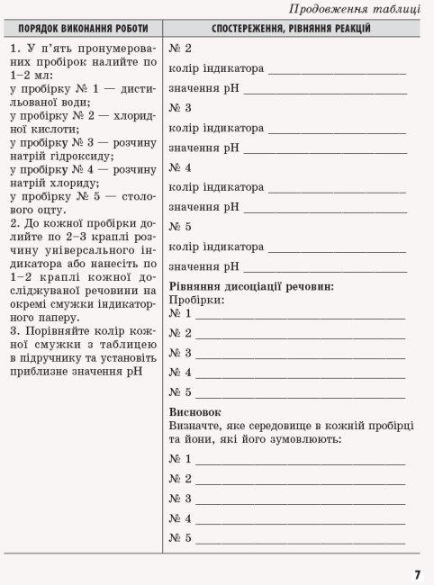 Хімія. Робочий зошит для 7 класу закладів загальної середньої освіти