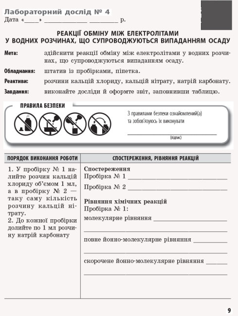 Хімія. 9 клас: зошит для лабораторних дослідів і практичних робіт