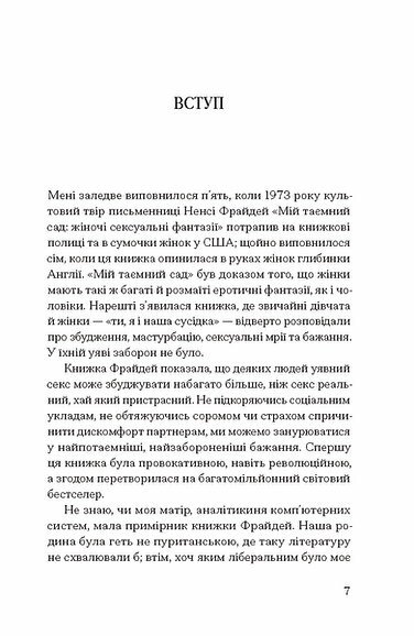Говорячи про секс, ми говоримо про жіночність і материнство, зраду та експлуатацію, згоду та повагу, справедливість і рівність, кохання та ненависть, насолоду та біль. І все ж таки з багатьох причин — складних чи ні — так багато з нас про це не говорять. Наші найглибші, найінтимніші страхи й фантазії залишаються замкненими всередині, поки хтось не принесе ключа. А ось і ключ.