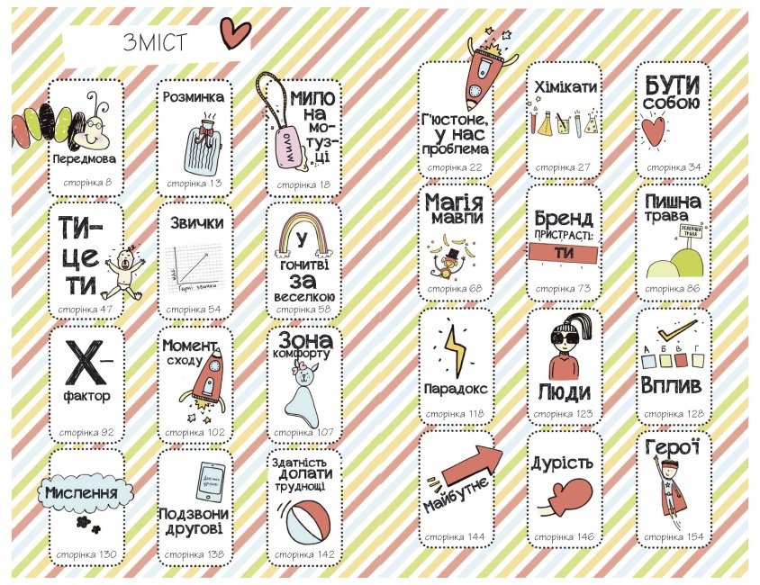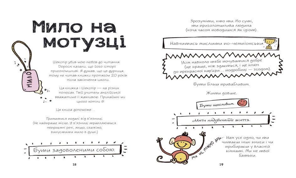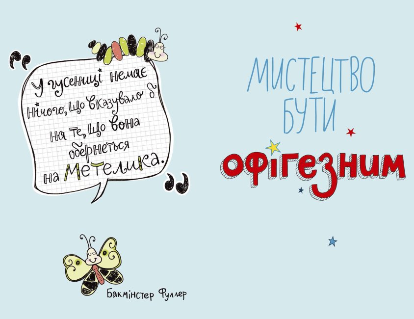 «Мистецтво бути офігезним» книга актуальна для сучасних підлітків та їх батьків. Містить багато порад, надихальні історії, яскраві приклади з життя з добрячою порцією гумору, а ще влучно підібрані та дотепні ілюстрації — тут ціла цікава стратегія, як стати активним, цілеспрямованим, успішним, а найголовніше — щасливим.