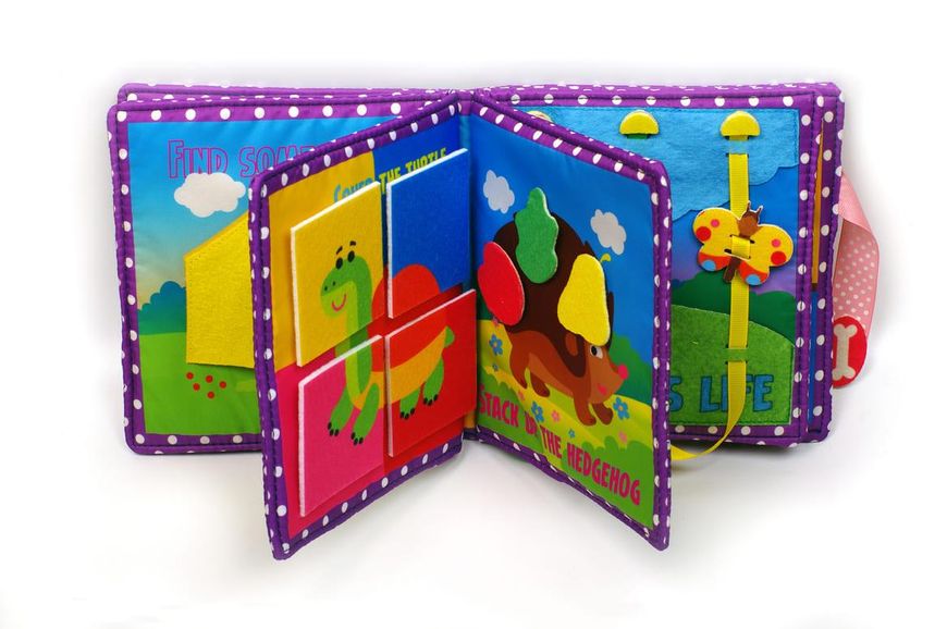 “М’які текстильні книжки завоювали велику любов серед батьків і дітей всього світу. Вони містять стільки різних і цікавих сторінок, з якими можна грати, що дітей навіть не чути. Не дарма їх ще називають “”тихими книгами””. Граючи з м’якою книжкою, дитина може освоїти рахунок, букви, пори року, кольори і буде працювати над розвитком дрібної моторики і тактильних відчуттів.”